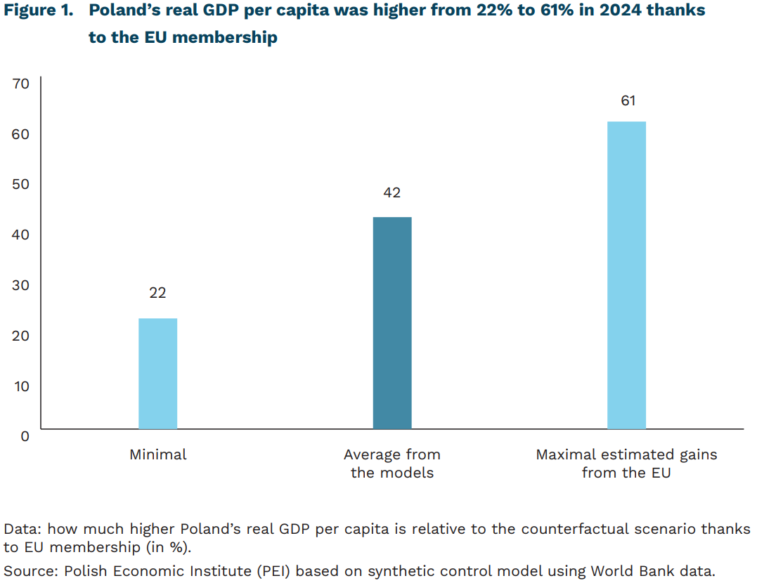 around 42% higher is Poland’s real GDP per capita thanks to joining the EU