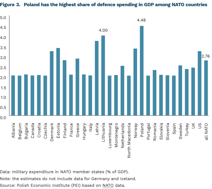 just under 4.5% of GDP is the share of Poland’s defence spending