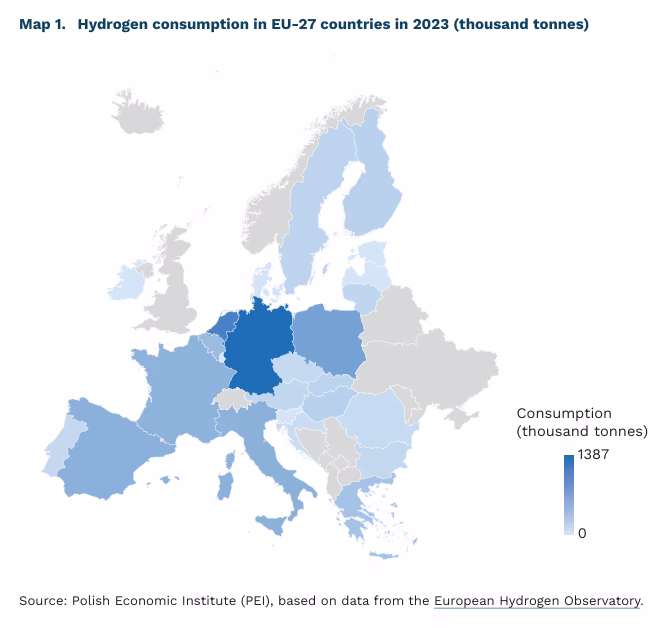 10% share of Poland in EU hydrogen production in 2023 (729 out of 7,265 thousand tonnes)