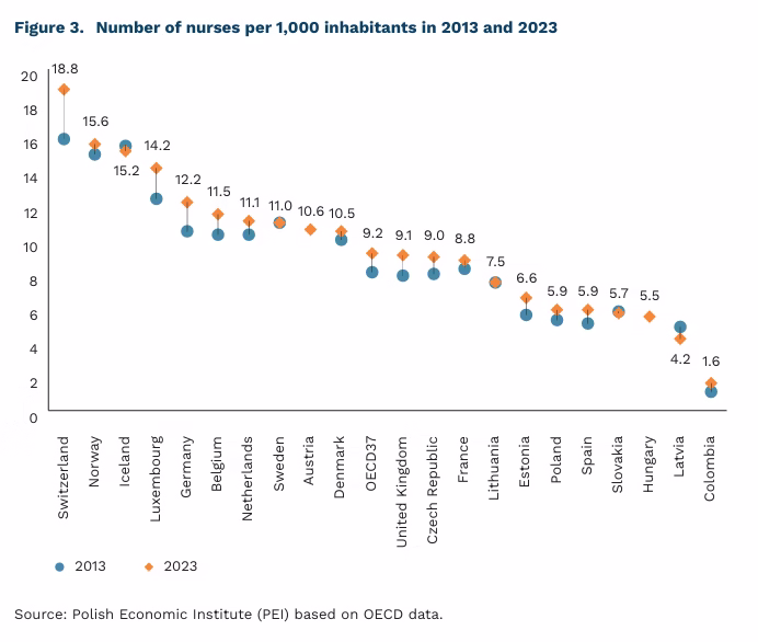 Fewer than 6 nurses per 1,000 inhabitants in Poland
