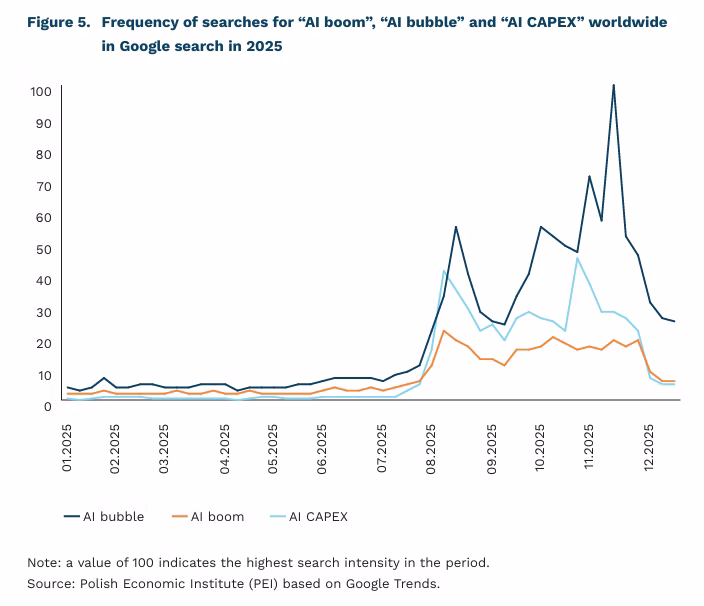 In August 2025, when Sam Altman mentioned in an interview that an investment bubble was emerging in the AI sector, and MIT published a report indicating that only 5% of f irms generate profits from deploying this technology, interest in the topic surged in the media and online. The debate has often drawn comparisons with the early-2000s dotcom bubble, when investor enthusiasm for the internet led to massive capital inflows into firms offering little more than promises of future profits. However, as discussed in a PEI podcast, the current situation differs in an important respect: investments in infrastructure (CAPEX – the layer on which most bubble discussions focus) are being made by firms with substantial capital buffers, and rising debt does not threaten their fundamentals. Although experts estimate that the ratio of AI investment to revenues stands at around 6.7, suggesting it has crossed a warning threshold, this figure has been declining in recent months, pointing to greater stability. The bubble debate is also reflected in tensions surrounding the race to build ever more powerful models. On the one hand, new models of ChatGPT, Gemini, Grok and the Polish Bielik have been announced; on the other, doubts about the limits of large language models (LLMs) have become increasingly vocal.