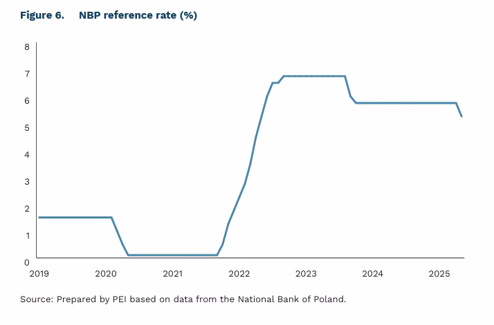 The beginning of May marked Poland’s first interest rate cut since October 2023. The National Bank of Poland (NBP) lowered its reference rate by 50 basis points to 5.25%. According to the Monetary Policy Council (MPC), the move was prompted by a faster-than-expected decline in inflation compared to the March projection. However, MPC members have signalled that no further cut is expected at the June meeting. The next easing of monetary policy is expected in July at the earliest, along with the publication of the latest projection, and will most likely be a reduction of 25 basis points. If current trends continue, a broader debate on policy easing will return in the autumn, when inflation, according to the latest NBP forecasts, will return to its target (2.5% with a possible deviation of 1 p.p.).