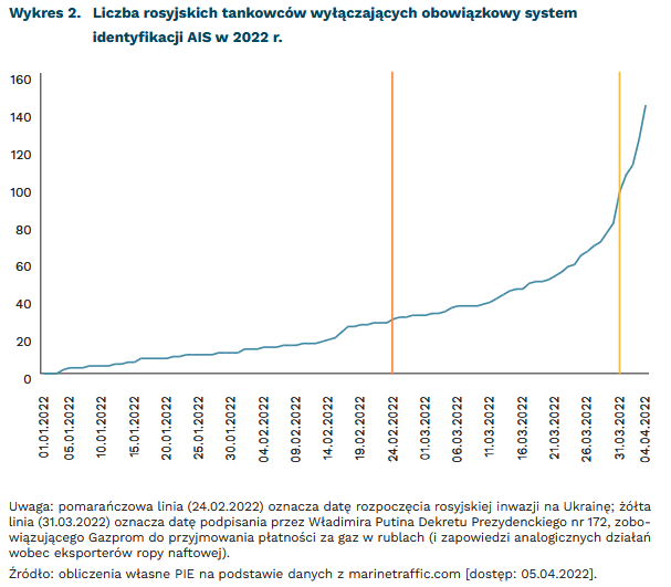 5 https://www.bloomberg.com/news/articles/2022-03-27/russian-tankers-going-dark-raises-flags-on-sanctions-evasion [dostęp: 05.04.2022].