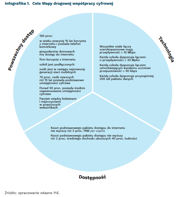 Mapa drogowej współpracy cyfrowej (Roadmap for Digital Cooperation) zawiera 15 celów, zebranych w trzy obszary. Cele mają być zrealizowane do 2030 r.