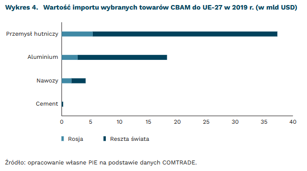 za 16,7 proc. importu towarów CBAM do UE w latach 2015-2019 odpowiadała Rosja