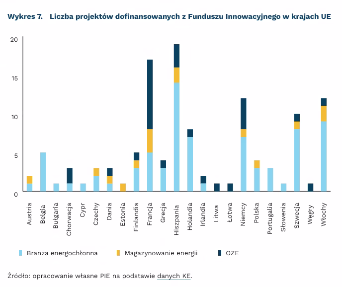 Całkowita kwota dotacji z Funduszu Innowacyjnego na polskie projekty wyniosła 312,6 mln EUR. Obecnie w Polsce prowadzone są 4 projekty dofinansowane z Funduszu Innowacyjnego, tj. projekt Kujawy GO4ECOPLANET, czyli projekt pierwszej zeroemisyjnej cementowni w UE; 2 projekty dotyczące produkcji odnawialnego wodoru: LOTOS Green H2 i projekt ZE PAK Green H2; NORTHSTOR + projekt stacjonarnego systemu magazynowania energii (ESS).