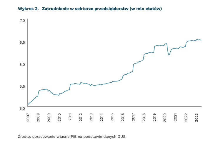 6,5 mln liczba osób zatrudnionych w sektorze przedsiębiorstw, stan na czerwiec 2023 r.