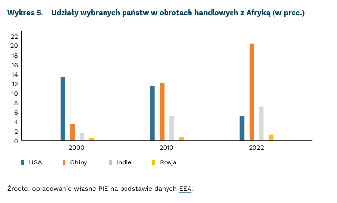 Kończący się Szczyt Rosja-Afryka w St. Petersburgu pokazał, że wbrew rosyjskiej propagandzie wpływy gospodarcze Rosji na kontynencie są niewielkie. Głównym obszarem współpracy jest wymiana handlowa, której wartość w 2022 r. wyniosła 18 mld USD. Stanowiło to zaledwie 1,3 proc. obrotów handlowych Afryki z resztą świata. Dla porównania wymiana towarowa z Chinami w 2022 r. wyniosła 282 mld USD, z Indiami 96 mld USD, z USA 72 mld USD, a z Koreą Płd. 20 mld USD. Także rosyjskie inwestycje zagraniczne mają marginalne znaczenie. Wprawdzie w Soczi w 2019 r. Prezydent Putin ogłosił projekty inwestycyjne na łączną kwotę 12 mld USD, jednak udało się uruchomić jedynie ich niewielką część. Według FDI Intelligence rosyjskie BIZ wynoszą ok. 1 proc. wszystkich inwestycji zagranicznych na kontynencie. Wpływy rosyjskie są śladowe również w opanowanym przez puczystów Nigrze, zaś perspektywa uzyskania przez Rosję dostępu do zlokalizowanych tam złóż uranu jest wysoce nierealistyczna.