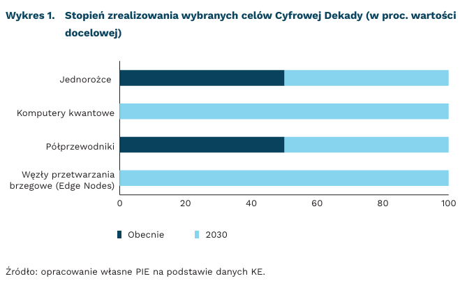 Nowe ambicje Komisji Europejskiej obejmują cele krajowe, ale także cele na poziomie całej wspólnoty do osiągnięcia w 2030 r. KE planuje, aby w Unii znajdowały się trzy komputery kwantowe. W realizacji tego celu mają pomóc różne projekty, m.in. EuroQCS-PL prowadzony przez Poznańskie Centrum Superkomputerowo-Sieciowe. Kolejny z nowych celów zakłada, że w Europie będzie 498 tzw. jednorożców (czyli startupów wycenianych na 1 mld USD), podczas gdy obecnie jest ich 249, z czego 11 polskich. Innym celem jest, aby 20 proc. światowej produkcji półprzewodników znajdowało się w Europie, przy obecnej produkcji na poziomie 10 proc. Polska może przyczynić się do realizacji tych celów i wzmocnienia pozycji UE, a KE zwraca uwagę, że nasze dotychczasowe działania powinny być kontynuowane.