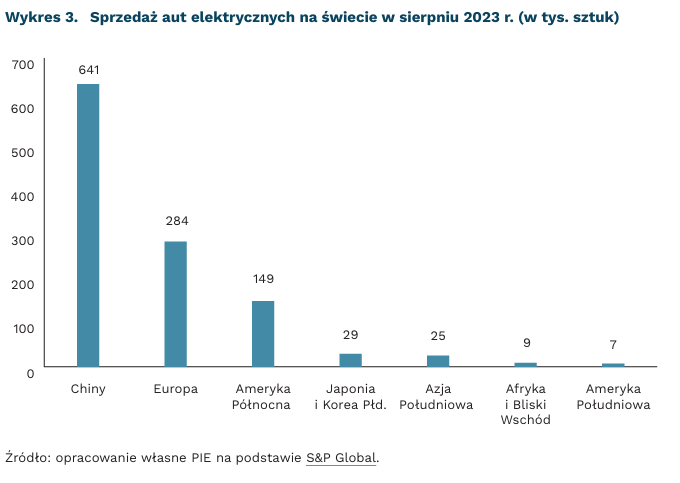 Udział chińskich samochodów elektrycznych w rynku europejskim wynosi obecnie 8 proc., a do 2025 r. ma wzrosnąć do 15 proc. Chińskie firmy, jak Great Wall Motor, SAIC czy BYD, dokonują agresywnej ekspansji na rynki europejskie, w czym, poza subsydiowanymi kredytami, pomagają im m.in. niższe koszty pracy, tańsza energia czy preferencyjne warunki dzierżawy gruntów. Szczególnie narażone na chińską konkurencję są Niemcy i Francja – najwięksi producenci aut elektrycznych w UE, których udziały w rynku europejskim w I kwartale 2023 r. wyniosły odpowiednio 22 proc. i 16 proc.