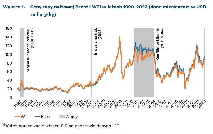 W czasie inwazji na Irak ceny surowca najpierw spadły w ujęciu miesięcznym o niecałe 20 proc. do 31 USD za baryłkę w marcu 2003 r., a w maju wzrosły o ponad 10 proc. m/m ponownie do ok. 30 USD za baryłkę. Cena ropy naftowej wahała się również w czasie konfliktów w Libii, Syrii i Libanie z 2011 r., jednak większy wpływ na rynek surowców wywierały czynniki makroekonomiczne.