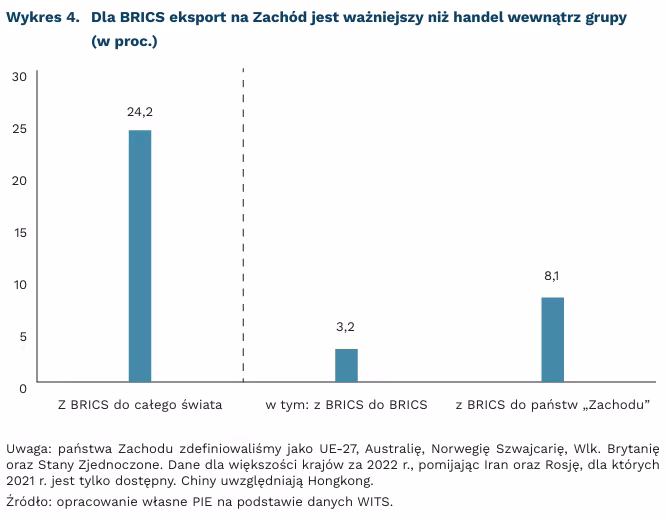 ok. 33,5 proc. wynosi udział krajów Zachodu w eksporcie towarów BRICS