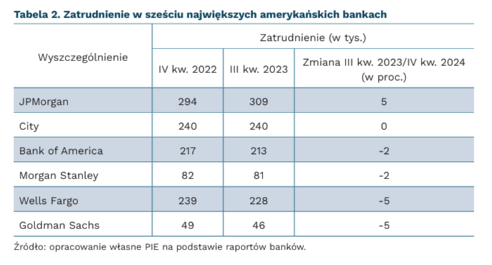 Główne amerykańskie banki redukują zatrudnienie. W odpowiedzi na wyzwania rynkowe związane z pandemią, w 2021 r. banki zwiększały zasoby kadrowe. JPMorgan zatrudnia obecnie ponad 68 tys. pracowników, tj. o 13 proc. więcej niż na początku pandemii. W ostatnich dwóch latach zatrudnienie w Goldman Sachs wzrosło o 17 proc. do 45 tys. pracowników. Podobnie sytuacja wygląda w Morgan Stanley, w którym liczba pracowników wzrosła o 26 proc. do ponad 76 tys. osób. Pod koniec I kwartału pięć dużych banków dominujących na Wall Street zatrudniało łącznie 882 tys. pracowników. To rekordowy wynik, wyższy o ponad 100 tys. osób w porównaniu z końcem marca 2020 r.