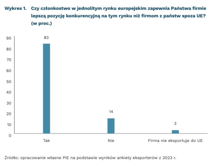 83 proc. polskich eksporterów uważa, że w 2023 r. miało lepszą pozycję konkurencyjną na unijnym jednolitym rynku niż firmy z państw spoza UE