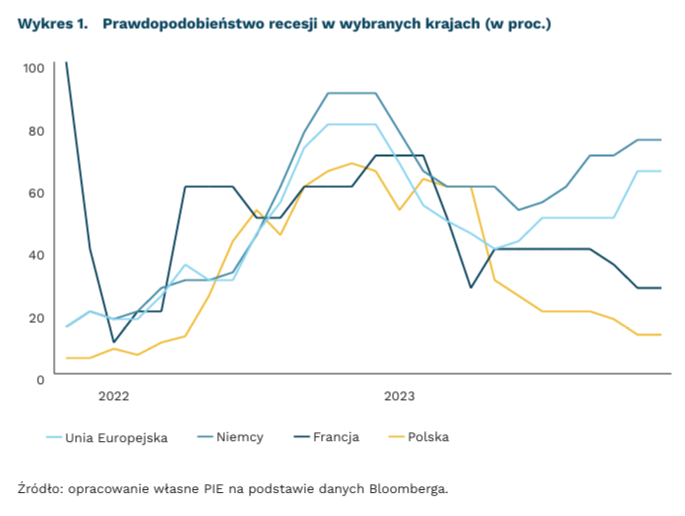 Ryzyko recesji w Polsce jest oceniane jako niskie, na poziomie zaledwie 12,5 proc. Taka ocena jest w dużej mierze wynikiem rosnących wydatków konsumpcyjnych polskich gospodarstw domowych. Ponadto, różnorodne formy wsparcia finansowego rządu dodatkowo sprzyjają konsumpcji. Komisja Europejska w swoich prognozach jako potencjalne czynniki ryzyka dla Polski wymienia: uporczywą inflację, wolne tempo rozpoczynania inwestycji z nowej perspektywy budżetowej UE oraz opóźnienia w implementacji projektów z Krajowego Planu Odbudowy.