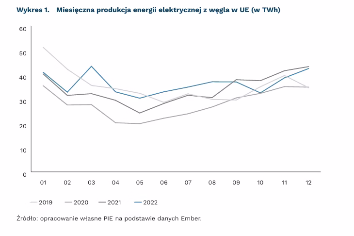 W całym 2022 r. produkcja energii elektrycznej z węgla w UE wzrosła o 28 TWh, a z energetyki słonecznej i wiatrowej o 72 TWh. Pomogło to uzupełnić lukę w podaży wynoszącą 185 TWh spowodowaną ograniczoną dostępnością mocy w elektrowniach jądrowych i wodnych. Redukcja zużycia zmniejszyła bilans o kolejne 79 TWh.