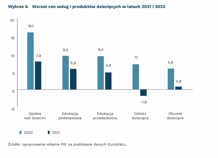 Koszty wychowania dzieci rosną obecnie w podobnym tempie jak inflacja. Ceny edukacji przedszkolnej, podstawowej, opieki nad dziećmi oraz odzieży i obuwia dziecięcego rosną w podobnym tempie jak towarów przemysłowych. Tym samym rodzice szczególnie mocno odczuwają bieżącą inflację.