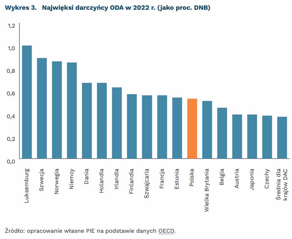 W związku z zaangażowaniem we wsparcie dla Ukrainy, Polska podniosła wolumen wydatków na pomoc rozwojową o 268 proc. i przesunęła się do czołówki krajów przeznaczających najwięcej środków na ten cel. Nieco mniejszy, ale również bardzo znaczący wzrost odnotowano w przypadku innych krajów regionu na czele z Estonią (226 proc.), Czechami (185 proc.) i Litwą (173 proc.).