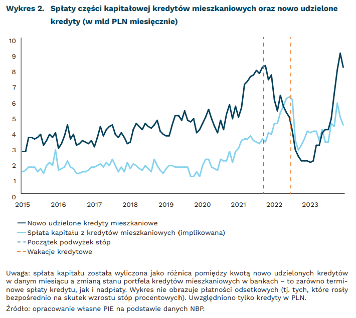 o 50 proc. wyższe w 2023 r. były spłaty kapitału z kredytów mieszkaniowych w porównaniu do średniej z lat 2015-2019