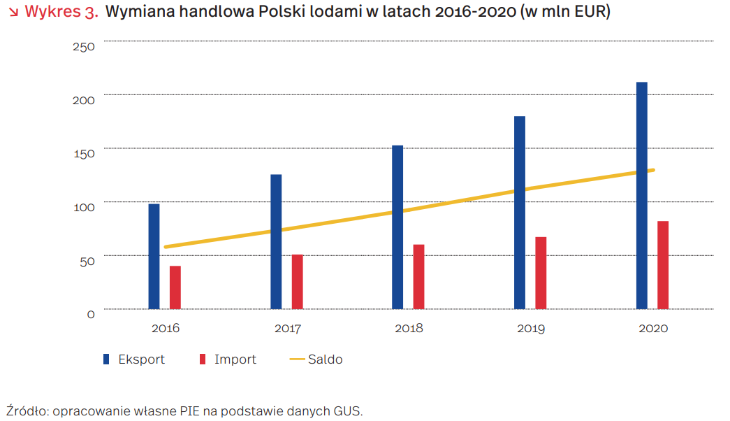 Polska jest w pierwszej dziesiątce największych eksporterów lodów na świecie. W 2020 r. nasz udział w światowym eksporcie wyniósł 5 proc., co dało 7. miejsce. Polska jest też w ścisłej europejskiej czołówce pod względem produkcji lodów. Według Eurostatu, nasz kraj jest 5. producentem w UE, a wielkość produkcji sprzedanej w 2019 r. wyniosła 228,7 mln litrów.