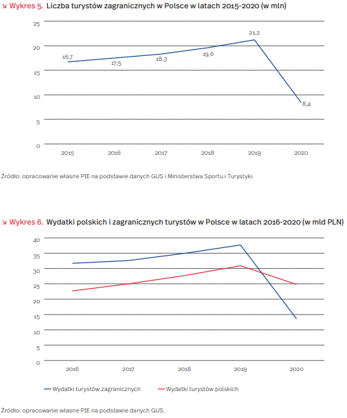Według danych opublikowanych przez Europejską Komisję Turystyki, liczba przyjazdów nierezydentów do Polski zmniejszyła się w 2020 r. o 69,7 proc., a liczba noclegów sprzedanych nierezydentom spadła o 64,5 proc. Dane dla stycznia 2021 r. były jeszcze gorsze: w porównaniu ze styczniem 2020 r. liczba przyjazdów nierezydentów spadła aż o 94,3 proc., a liczba noclegów wykupionych przez gości zagranicznych o 89,4 proc.