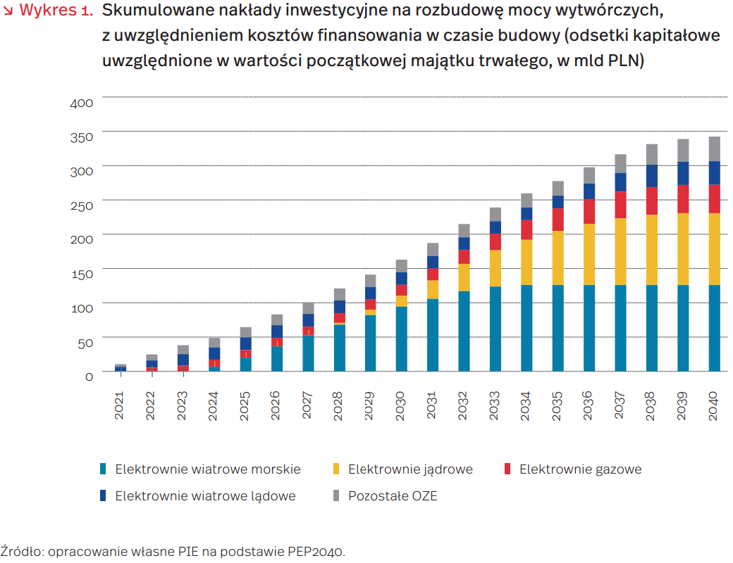 Według wstępnych szacunków, koszt budowy bloków jądrowych do 2040 r. wyniesie ok. 105 mld PLN z blisko 350 mld PLN przeznaczonych w PEP2040 na nowe moce wytwórcze. Ostateczne koszty zależą jednak w dużym stopniu od wyboru partnera przy budowie elektrowni. Obecnie wśród oferentów technologii rozpatrywane są spółki z Korei Płd., Francji i USA. Według obecnych zapowiedzi pełnomocnika rządu do spraw strategicznej infrastruktury energetycznej, ostateczny wybór oferenta technologii ma nastąpić na przełomie lat 2021 i 2022, a budowa pierwszego bloku ma rozpocząć się w 2026 r.