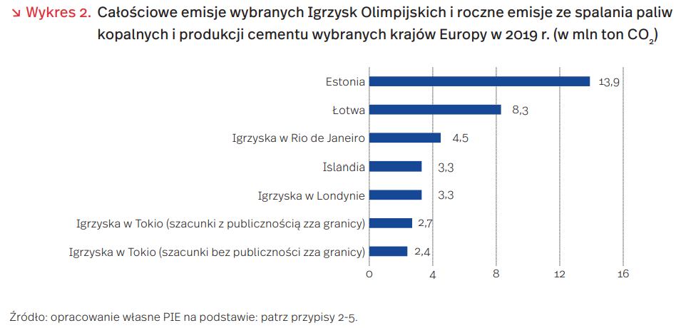 Igrzyska Olimpijskie, jako jedna z największych imprez sportowych na świecie, wiążą się z dużą emisją CO2 na wszystkich etapach realizacji – począwszy od przygotowań i remontów infrastruktury, a skończywszy na emisjach wynikających z przelotów, zakwaterowania sportowców i kibiców. Podczas poprzedniej edycji letnich Igrzysk Olimpijskich – w Londynie i Rio De Janeiro – odnotowano dodatkowe emisje na poziomie odpowiednio 3,3 mln oraz 4,5 mln ton CO2 . Jest to ślad węglowy zbliżony do rocznych emisji Islandii (3,3 mln ton CO2 ) i o ok. połowę niższy od rocznych emisji Łotwy (8,3 mln ton CO2 ) ze spalania paliw kopalnych i produkcji cementu.