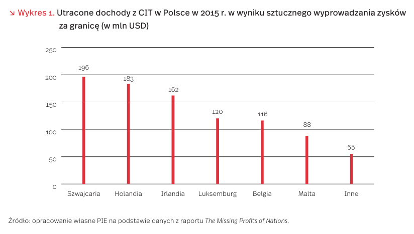 Polska, z powodu sztucznego wyprowadzania zysków do rajów podatkowych, traci 11 proc. dochodów z CIT. Według autorów raportu, jest to około 1 mld USD rocznie, a więc 3-4 mld PLN. Taka kwota pozwoliłaby Polsce na wybudowanie prawie 100 kilometrów autostrad co roku. →Najwięcej zysków wyprowadzanych jest z Polski do Szwajcarii, Holandii, Irlandii i Luksemburga. To o tyle zaskakujące, że oprócz Szwajcarii są to kraje należące do Unii Europejskiej, w ramach której kładzie się coraz większy nacisk na ograniczanie luk podatkowych. 73 proc. sztucznie wyprowadzanych z Polski zysków trafia właśnie do państw UE (część z nich z pewnością jest następnie transferowana do bardziej „tradycyjnych” rajów podatkowych). Z kolei najbardziej znane raje podatkowe, takie jak Bermudy i Karaiby, odpowiadają jedynie za 2 proc. utraconych zysków.