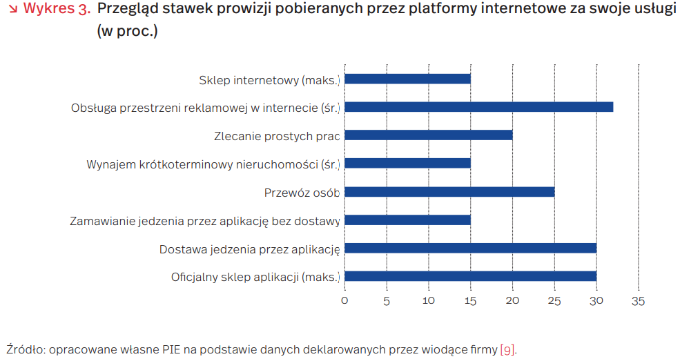 Wysokie prowizje to powszechne zjawisko w świecie cyfrowym. Standardowe stawki w rozliczeniach między platformami a firmami korzystającymi z ich pośrednictwa oscylują w granicach 15-30 proc. W przypadku niektórych usług można wskazać stałą prowizję (np. Uber, który podaje oficjalnie 25 proc.), w przypadku innych stawki różnicowane są w zależności od kategorii (np. w Allegro stawka prowizji zależy od kategorii wystawianego towaru i waha się od 0 proc. do 15 proc.).