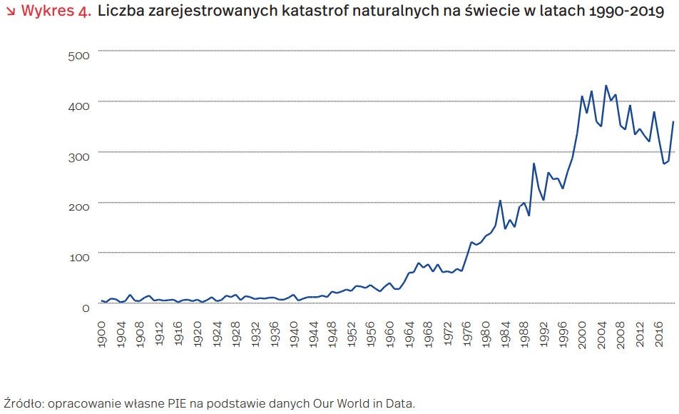 Wzrost liczby rejestrowanych katastrof naturalnych na świecie pokrywa się z globalnym wzrostem temperatur. Według pomiarów NASA, średnioroczne temperatury na świecie w ostatnich 5 latach wahały się od 0,9 do 1 stopnia Celsjusza powyżej średniej temperatury rejestrowanej w latach 1951-1980. Aż 19 z 20 najcieplejszych lat od 1880 r. zanotowano w ostatnim 20-leciu.
