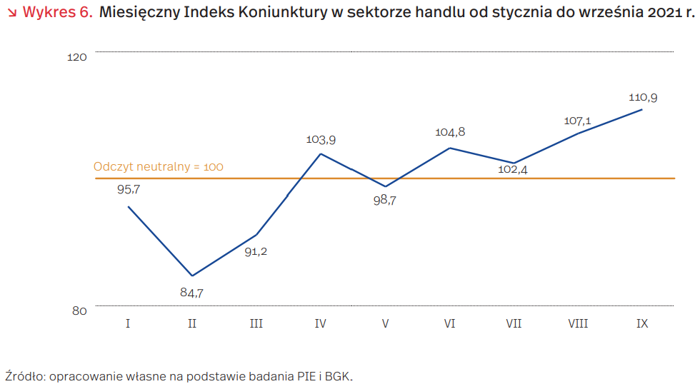 Do pozytywnych nastrojów firm handlowych przyczyniły się zwiększone zakupy konsumentów i pozytywne skutki przyspieszonych w czasie pandemii wydatków firm handlowych na nowe technologie. Pozwoliły one uruchomić sprzedaż online, poprawić logistykę, zacieśniać relacje z dostawcami i klientami oraz ograniczyć koszty poprzez automatyzację procesów handlowych. Dotyczy to przede wszystkim sieci handlowych, bowiem wdrażane technologie trafiają do sklepów wykorzystujących jednolite systemy, umożliwiające ich szybką implementację. Natomiast różne systemy informatyczne wykorzystywane w niezależnych sklepach sprawiają, że osiągnięcie korzyści z cyfryzacji firmy jest trudniejsze i bardziej kosztowne.