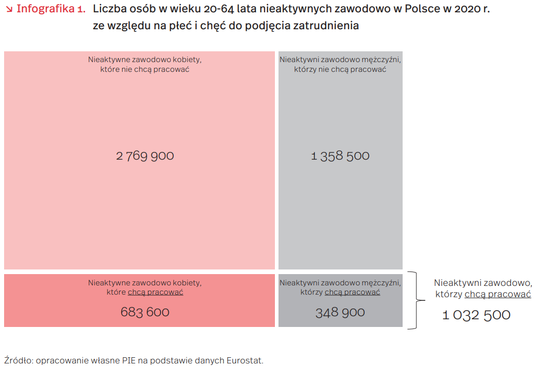 W 2020 r. w Polsce było 1 032 500 osób nieaktywnych zawodowo poszukujących zatrudnienia (stan na 2020 r., infografika 1). Każdy dotychczasowy kryzys gospodarczy (również ten spowodowany pandemią COVID-19) pociągał za sobą wzrost odsetka biernych zawodowo. Powiększająca się w wyniku kryzysu luka w życiorysie osoby zdolnej do pracy nie tylko niekorzystnie wygląda w oczach pracodawcy, lecz również uniemożliwia takiej osobie utrzymanie lub zdobycie umiejętności potrzebnych na rynku pracy.