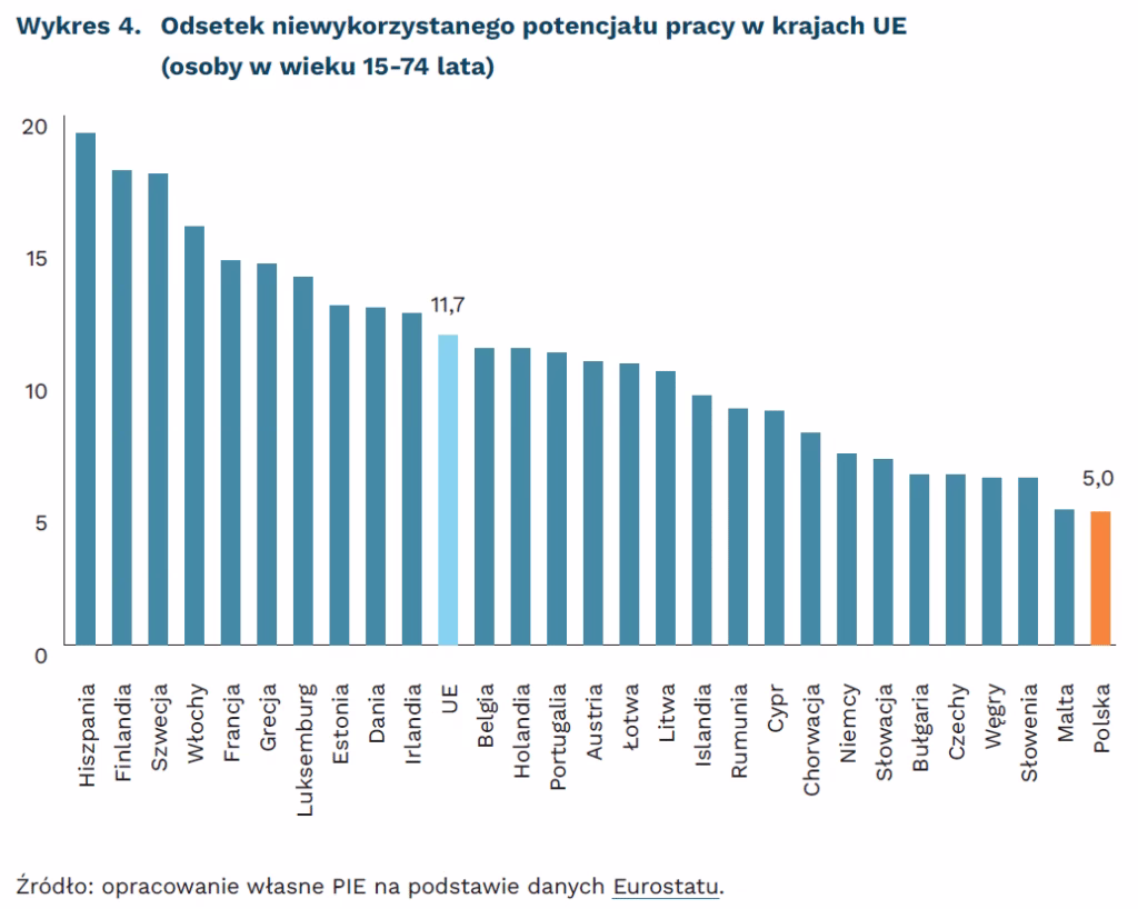 Polska ma najmniejszy w UE poziom niewykorzystanych zasobów pracy
