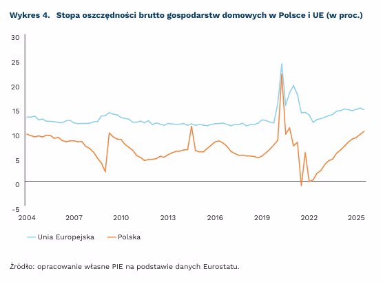 o 0,6 pkt. proc. zwiększyła się stopa oszczędności w Polsce w III kwartale 2025 r. względem poprzedniego kwartału